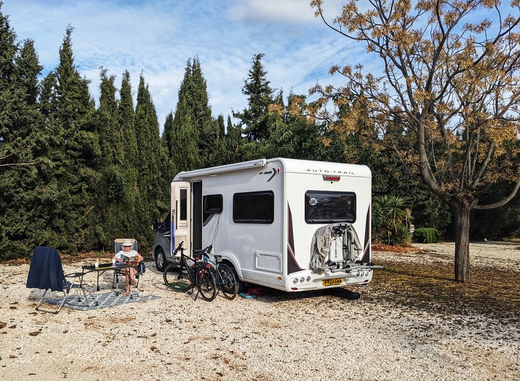 Since arriving we’ve been able to enjoy some sunny afternoons which enabled us to sit outside Frodo basking, accompanied, of course, by sipping. However …