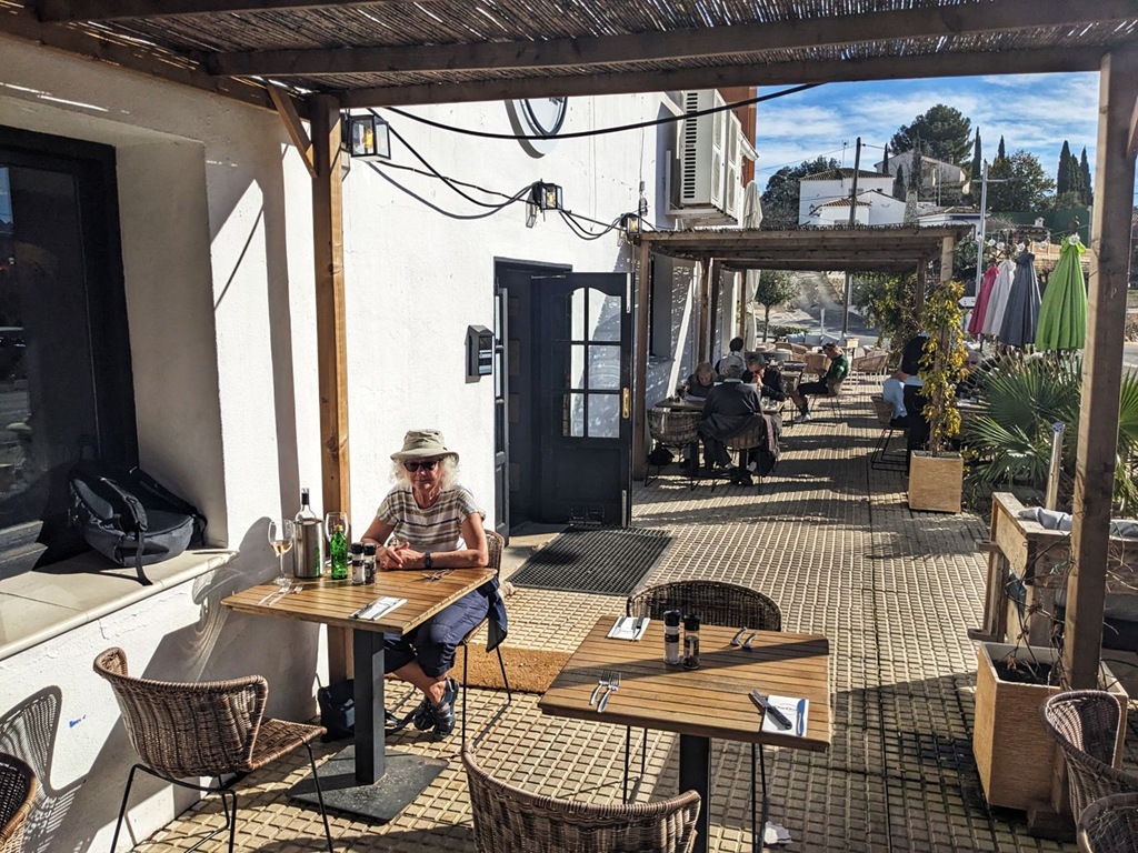 It’s gone beyond being a joke; it’s getting tiresome. We have managed to eat lunch outside in some sun precisely twice. The better of these occasions was at a new discovery for us in Alcalalí itself: a restaurant called “Cha Cha”. Cha Cha has a menú del dia – three courses for €14.50. The food was basic but good and the service was fine. It’s downside is that it only has the menú del dia – you can’t pick and choose tapas from the menu to make a lighter meal. Sitting outside in some warm sun in between storms was very pleasant, perhaps even more pleasant owing to the occasion’s rarity.