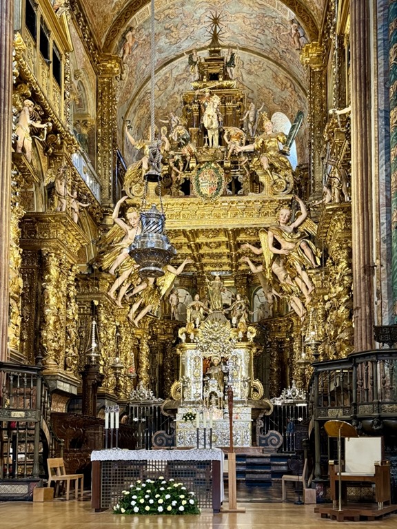 Francine and a couple of travelling companions wanted to go into the cathedral. While they did, I happily remained outside guarding the small collection of rucksacks. Upon exit, Francine said that most of the cathedral interior was relatively plain but that the altar did possess lots of “bling”. This image shows the enormous incense burner to counteract unpleasant smells of the great unwashed, which weighs in, allegedly, at 100kgs. Don’t get hit on the head.