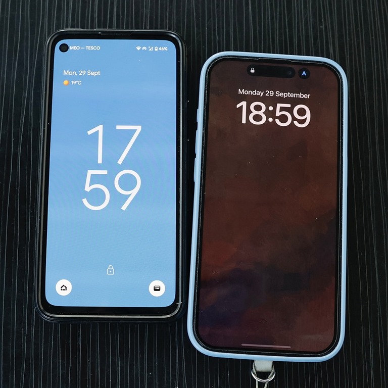 Clearly, we were suffering from time zone inconsistencies. I can attempt to explain. Our campsite is on the south bank of the Minho river, which forms the northern Portuguese border. The hill just across the water on the north side is Spain. On our camping pitch we had both Apple time (Spanish, on the right) and Android time (Portuguese, on the left). If Francine wandered about 10m towards the campsite gate, her phone flipped into Portuguese time. Poor Francine was temporally disoriented.